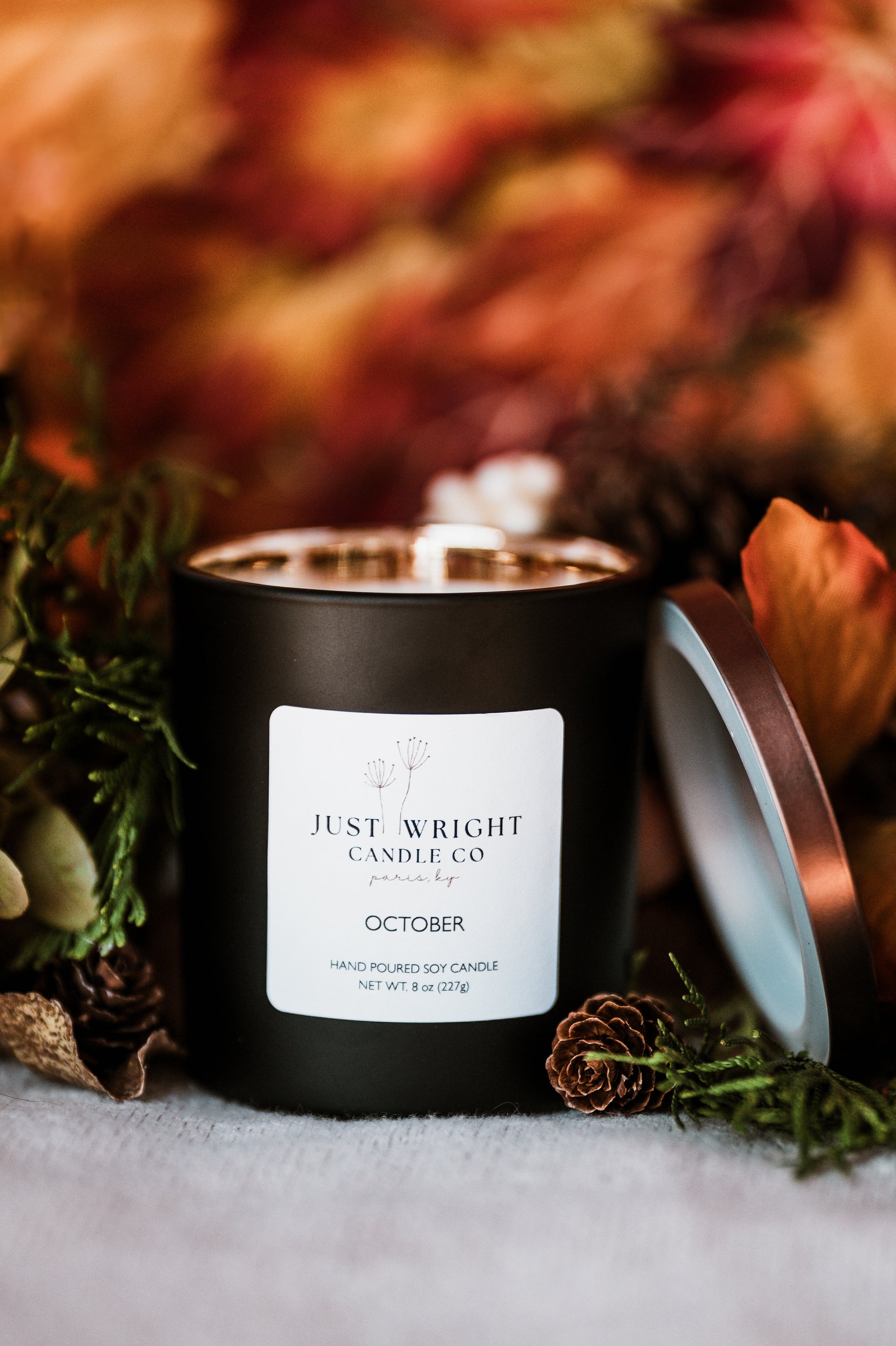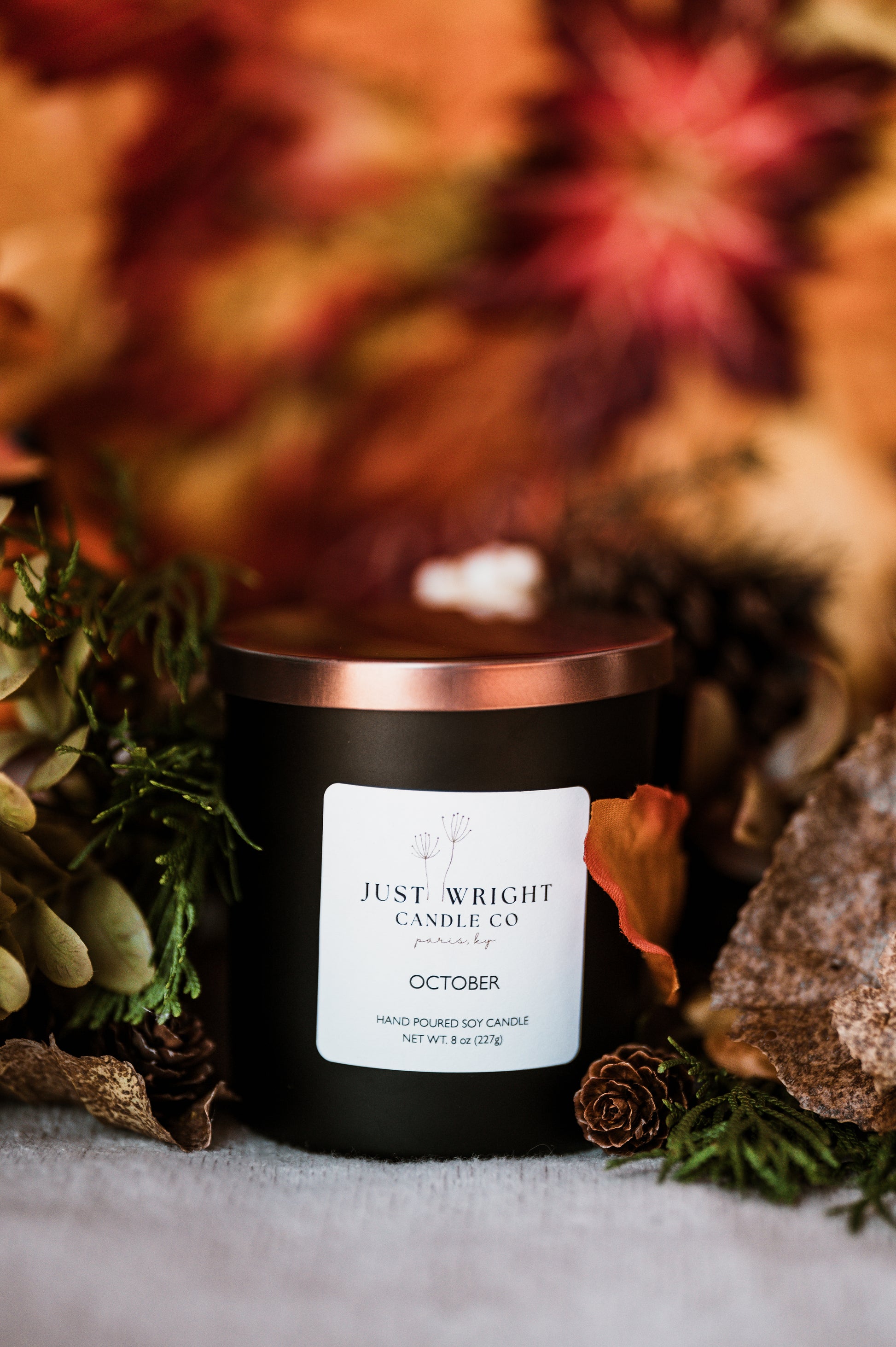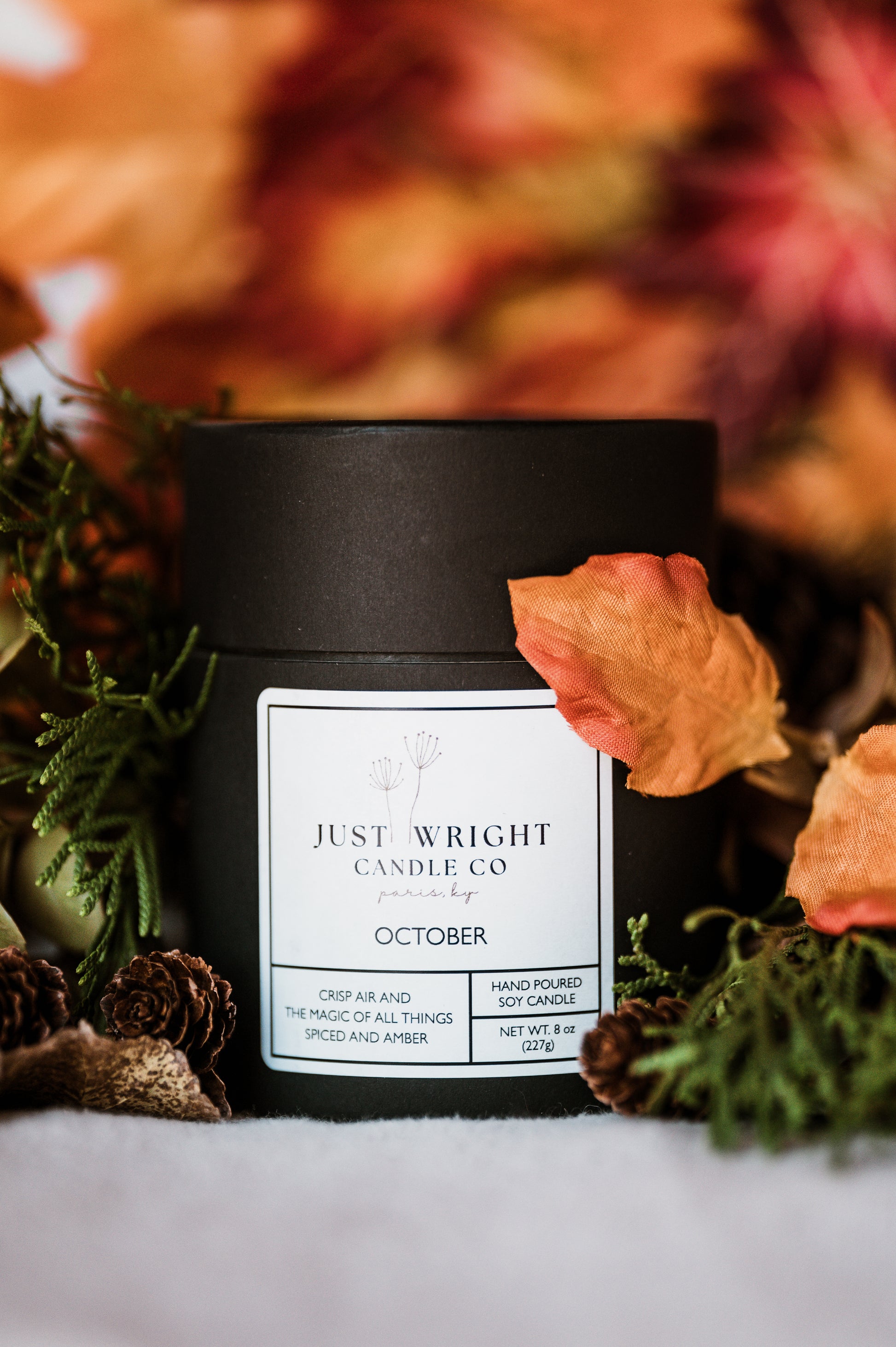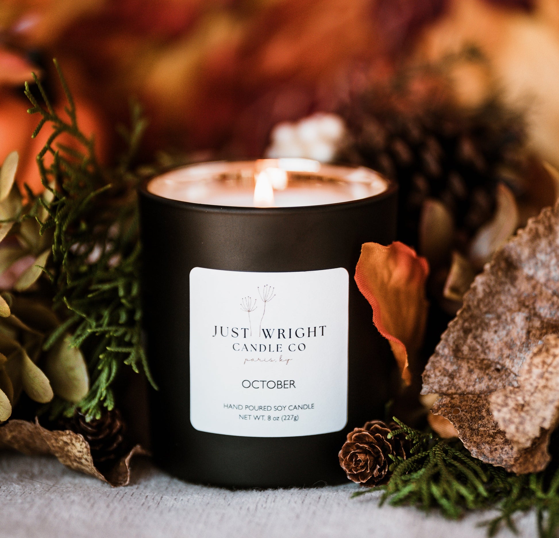 October’s candle captures the magic of autumn nights where the air is crisp, the stars glow bright and the season feels alive with possibility. Notes of pear and plum mingle with warm cinnamon, clove, and apple cider, while a touch of brandy and sandalwood add depth and coziness to this fall scent.